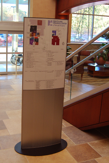 Near every main entrance, a ground or wall directory gives the guest a perspective of where they currently are and what direction they need to go. |