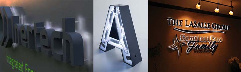 Each letter or logo is literally it's own independant lit sign cabinet which is custom bent to the font or logo of your choice. These letters are either mounted directly to the wall or on a raceway.