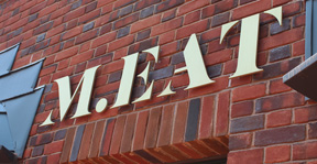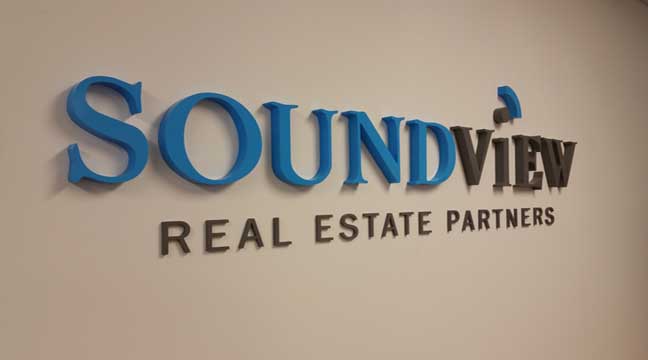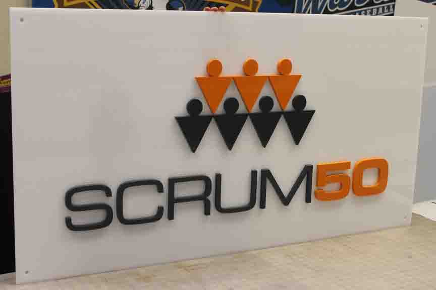 Dimensional letters are individually cut and mounted,