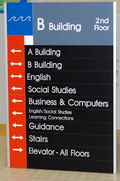Directional or Way Finding Systems are a carefully coordinated set of interior and exterior signage that is intended to direct the user along a path or course to a desired destination.