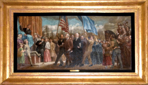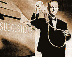 I wasn't seriously suggesting it, just throwing it out for comic relief, but Jed loved it. He really thought we ought to use it. We both knew that if we did put it up, it would be taken down in short order -- and we would never be asked to do this job again.