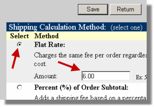 Select the flat rate option by clicking on the "Flat Rate" button. Enter your shipping rate.