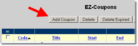 Now, there should a list of three coupons on the EZ-Coupon page. Depending on when you created your coupon and the date you entered, the status will indicate whether the coupon is Active, Expired, or Scheduled in the future. If you maintain a large number of coupons, you can sort them into different orders by clicking on a column heading.