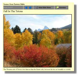 When you uploaded the photos in the previous step, the system automatically generated three types of web pages. First, a page with thumbnail photos is created; second, a separate web page for each photo; and third, a slide show page. Let’s see what they look like.