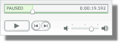 - The first player (auto.swf) will display the graphic controls you see below. The player will begin playing the sound file automatically once it and the file are loaded on you web site. Using the graphic controls, the sound can be controlled. Note: the graphic below is just the graphic of the player. By itself it is not functional.