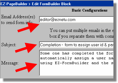 - Enter the subject and the message you want in the email you will receive. I suggest that you make the subject and the message as descriptive as possible. Most people get so much email, it is often hard to pick out the real messages from the SPAM. I have also found that over time I have a number of messages sent to me via forms, and I cannot remember what they are for unless I provide careful instructions to myself.