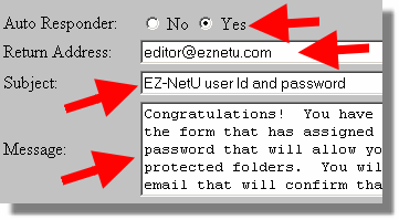 Segment 3 - Email list. Skip the “Add to EZMailList” section. Segment 4 - Auto responder. This section deals with the auto responder that will be sent back to the person completing the form. Your prior preparation will make this segment go quickly. Complete the following data fields. - Select yes.