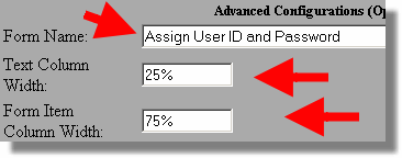 - To help the fields on the form line up, I typically use a “Text Column Width” of 25 % and “Form Iteam Width” of 75 %.