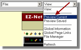 Select the "Preview Current" option from the "View" drop down menu. You can preview your page at anytime while in EZ-PageBuilder.