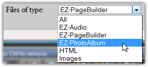 Using EZ-Browse you can create a link directly to an EZ-PhotoAlbum page. After you've launched EZ-Browse, select EZ-PhotoAlbum under the Files of Type dropdown.