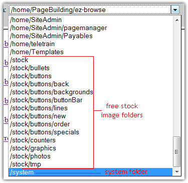 As a part of your account, we also provide you with a huge set of stock graphics for your web site. You may use these on your web site as you please. To select one of these images, you will need to change files of type to "Images." Then navigate to a stock image folder (one of the ones you see below) and select an image. You may want to preview it using the preview button before you decide on an image.