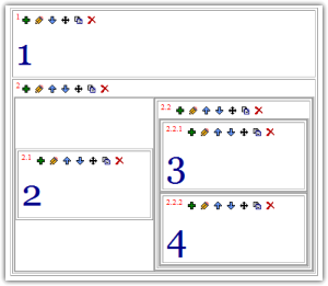 - Block #2.2 is another layout manager block, with "rows" selected as the layout style. It contains two blocks also:
